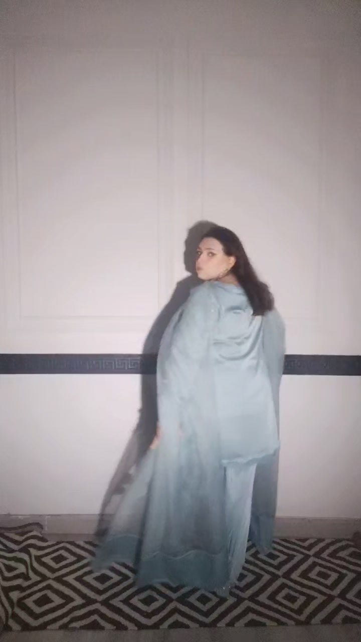 Tiffany - Farsi Shalwar Set in textured Silk fabric, giving perfect Eid Vibes.This Tiffany blue Farshi shalwar is the perfect choice for festive occasions. Made from pure textured silk fabric, it offers both comfort and style. Paired with a beautiful organza dupatta, it is sure to make a statement. Elevate your style with this trending piece that is perfect for any festive event.